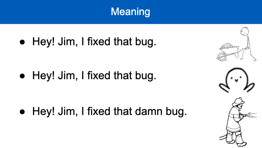 For example, 3 people can come to you and say the exact, or almost exact same thing and have 3 completely different meanings, which set an expectation of (or hope for) 3 different responses.